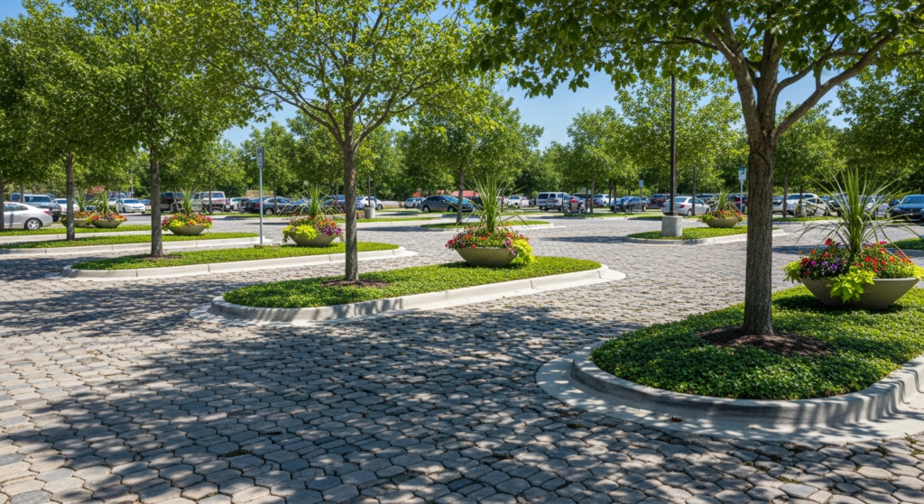 Commercial properties take more abuse than residential ones. Higher foot traffic, heavier loads, snow removal equipment, and accessibility requirements all demand hardscaping that’s built to a higher standard.